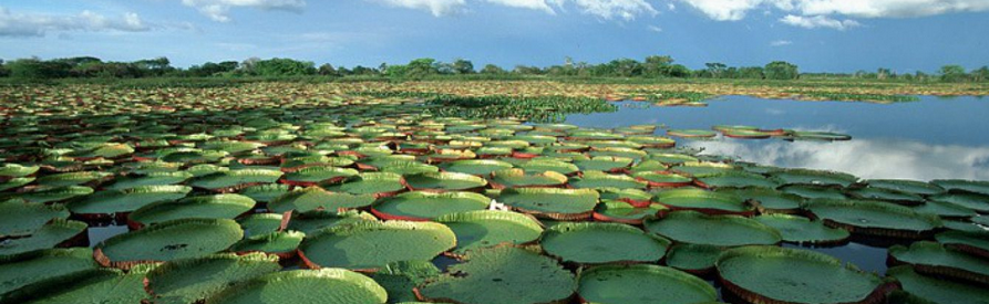 The Victoria Amazonica lily, the National flower of Guyana – is the largest water lily in the world with leaves spanning more than three meters across with thick stalks submerged 7-8 meters in water. When the flowers first bloom at night, they are white and open. On the second night, they become pink. These flowers can grow up to 40 centimeters in diameter and are usually pollinated by beetles.
