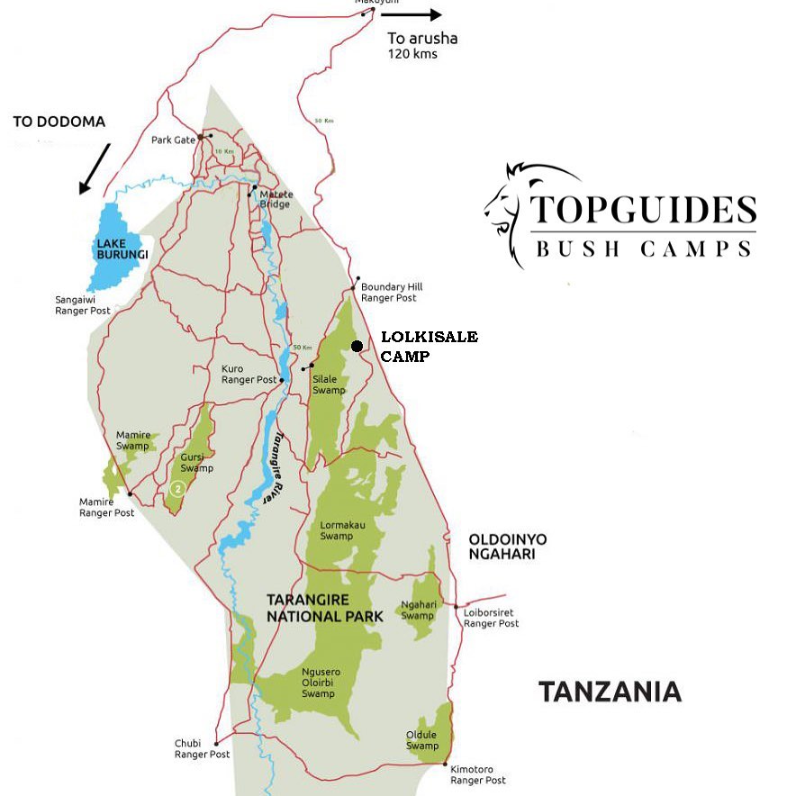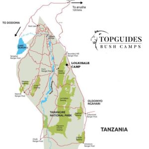 Lolkisale Camp is situated right in the heart of Tanzania’s Tarangire National Park, on the edge of an open wetland. Here, you’ll have the unique experience of watching the drama of nature unfold while sipping a coffee or wine on your front porch. In these wetlands, the view changes each day as different herds pass by in search of water, and after them, the big cats that inevitably follow.