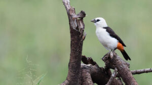 Spectacular birding includes specials like Fishcher’s lovebird, rufous-tailed weaver, grey-breasted spurfowl, yellow-necked spurfowl and yellow-throated sandgrouse, a few of over 500 avian species. The image below is a white-headed buffalo weaver.