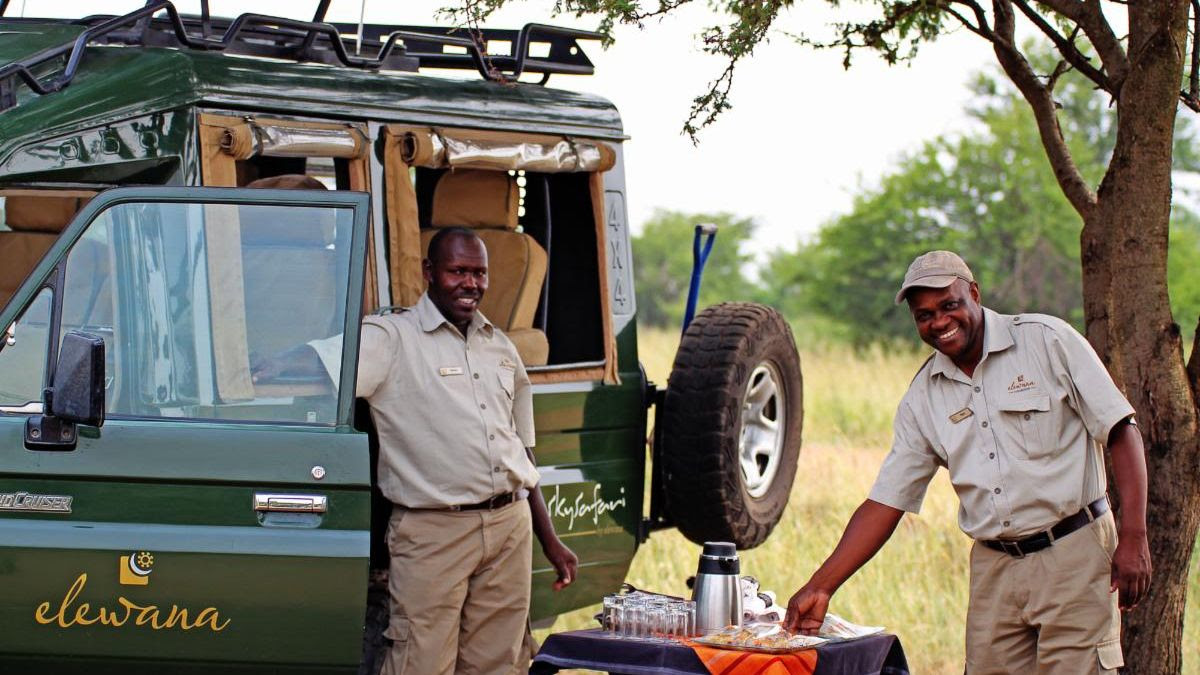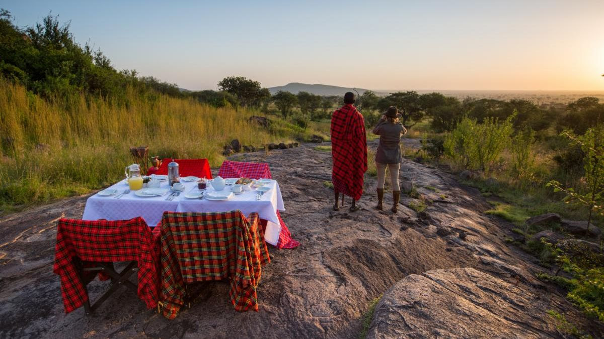 Once on safari, we offer SkySafari guests secluded dining options at the Elewana tented camps and lodges including intimate bush breakfasts and dreamy, relaxing sundowners in separate protected areas, as well as options for private candlelit dinners at properties like Elewana The Manor at Ngorongoro and Elewana Serengeti Migration Camp.