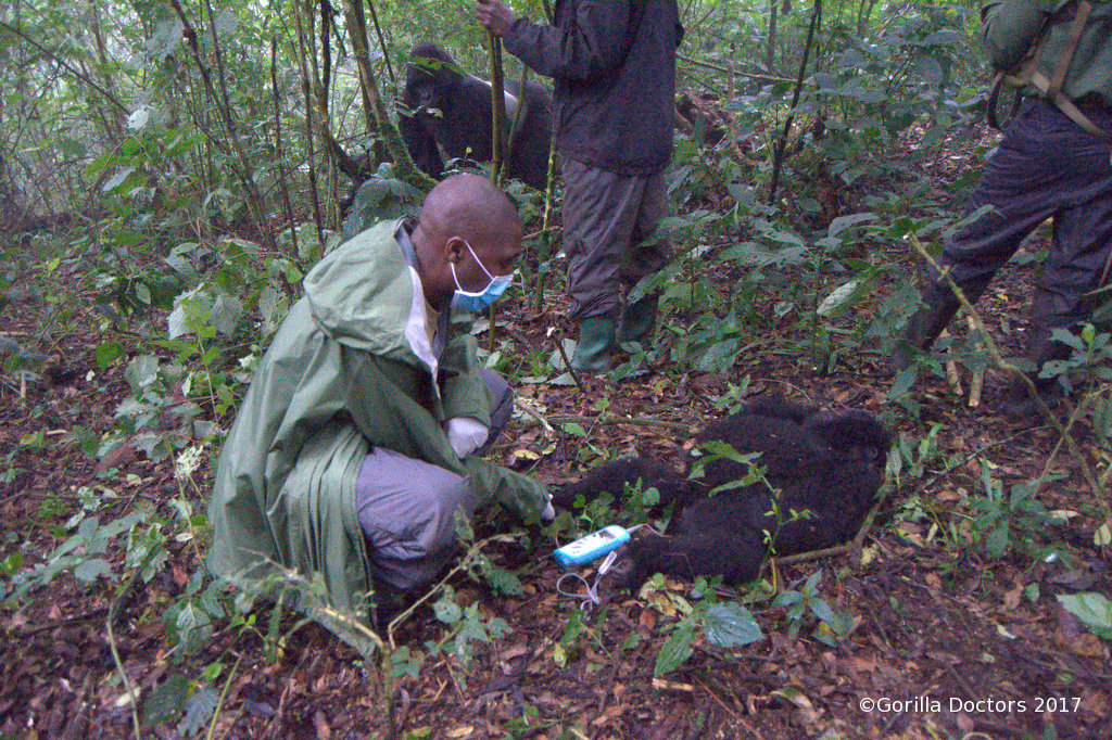 “The dominant silverback of the group, Bukima, began chasing the others away from the Gorilla Doctors. Bukima then proceeded to maintain a safe perimeter for Dr. Eddy as he worked to remove the snare. Bukima clearly knew that Dr. Eddy and the rangers were there to help. And, he also knew that as the leader of the group, it was his job to manage the situation.”