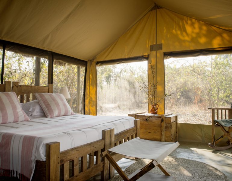 A rustic bush retreat, the camp’s tented rooms feature outdoor showers and open out onto the Ruaha plains.
