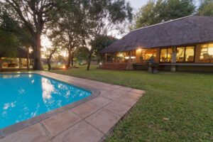 But just up the road is Dunn’s Camp with its six comfy cottages, swimming pool and communal lounge, dining, and kitchen areas in a forest and garden setting beside the Selati River.