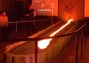 Ragga and Júlíus Ágústsdóttir, the husband-and-wife team that created Lava Show, worked with American rocket scientists to design the super-heating furnace that produces the molten lava. The furnace is powered by methane gas extracted from organic waste, making the show both eye-catching and environmentally friendly.